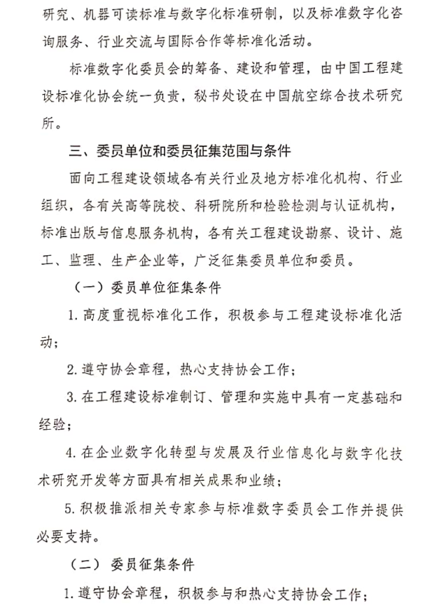 关于征集中国工程建设标准化协会标准数字化工作委员会委员人选的通知