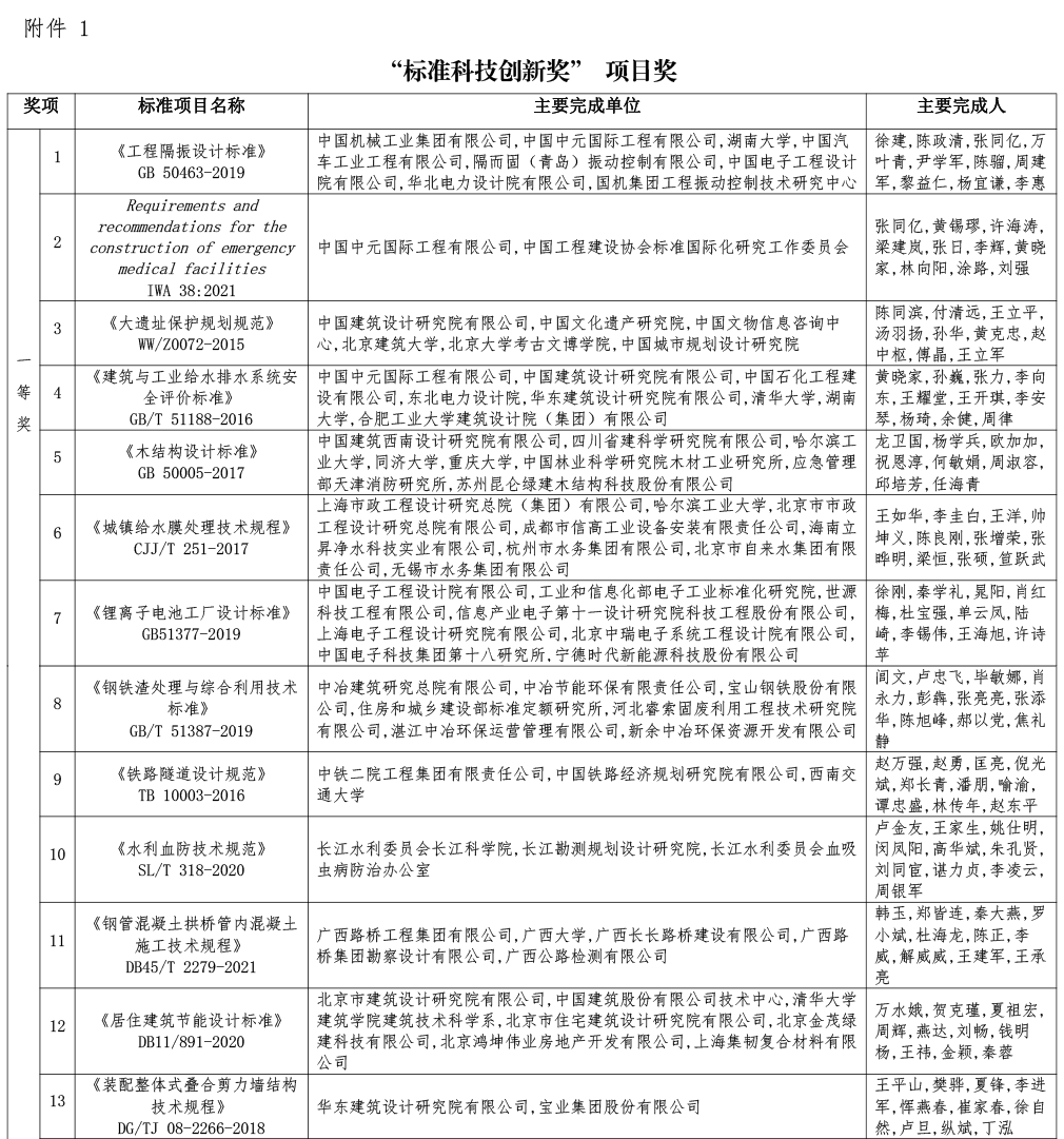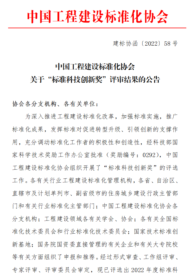 中国工程建设标准化协会关于“标准科技创新奖”评审结果的公告