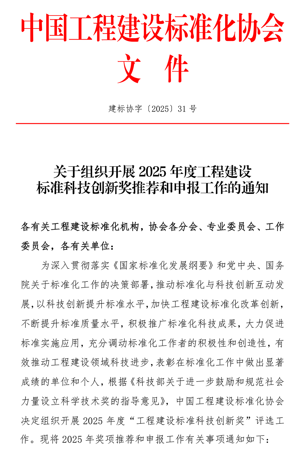 关于组织开展2025年度工程建设标准科技创新奖推荐和申报工作的通知