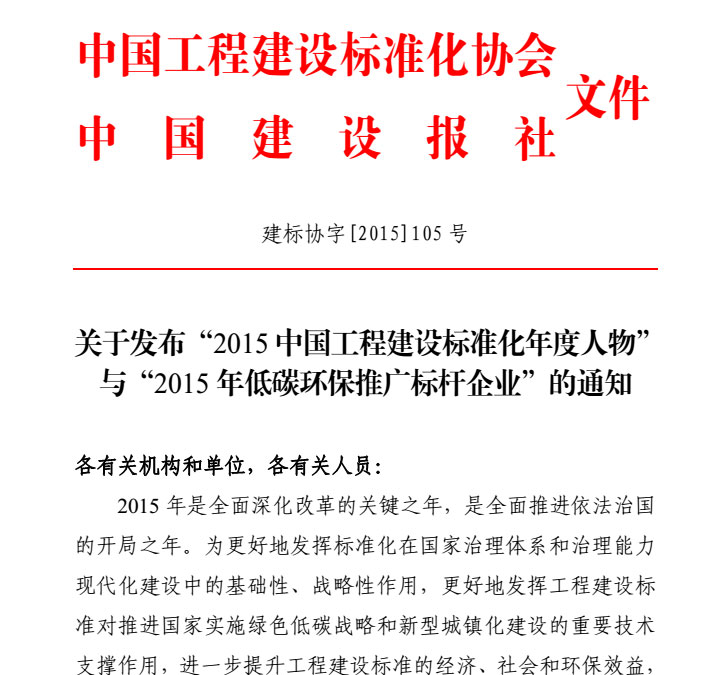关于发布“ 2015 中国工程建设标准化年度人物” 与“ 2015 年低碳环保推广标杆企业”的通知