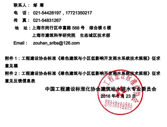 关于《绿色建筑与小区低影响开发雨水系统技术规程》征求意见的通知