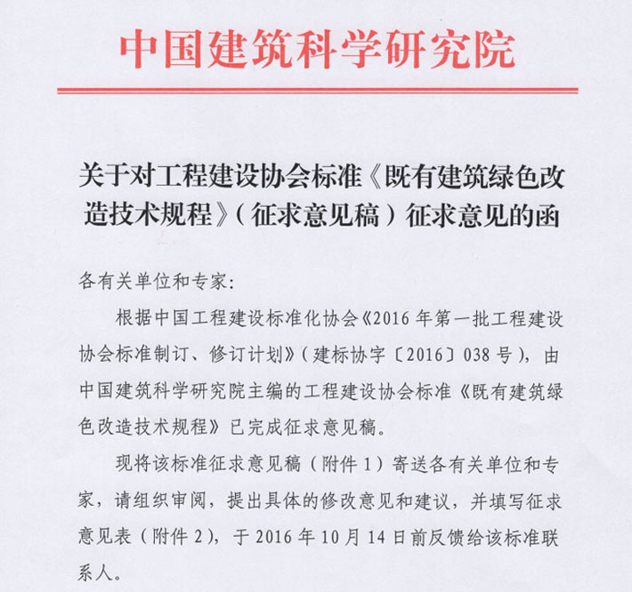 关于对工程建设协会标准《既有建筑绿色改造技术规程》(征求意见稿)征求意见的函