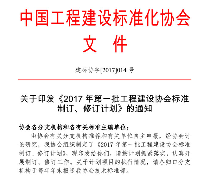 关于印发《2017年第一批工程建设协会标准制订、修订计划》的通知
