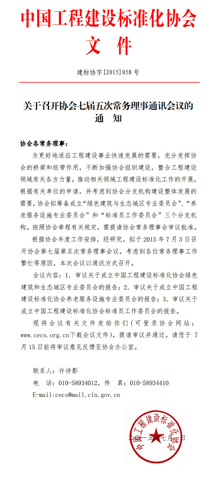 关于召开协会七届五次常务理事通讯会议的通知